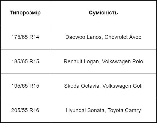 Типорозміри шин всесезон в Україні